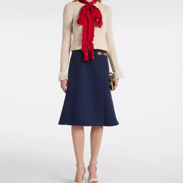 Valentino’s Midi Skirt is more than just a garment; it’s a statement of refined taste and luxury. The gold waist detail adds a unique accent, while the high-quality construction ensures long-lasting comfort and wearability. The combination of elegance and practicality makes it a standout addition to any wardrobe.