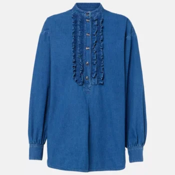 Valentino Denim Shirt with Ruffle Details and Decorative Buttons
