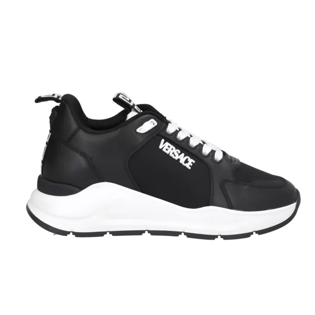 Experience Versace Luxury with Black and White Leather Sneakers