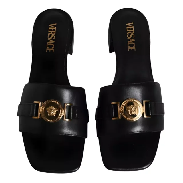These VERSACE Black Leather Slides offer more than just a luxurious appearance – they are built for comfort and versatility. The leather is soft yet durable, allowing your feet to breathe while providing a comfortable fit all day long. Whether you’re dressing up for a night out or keeping it casual, these sandals are perfect for every occasion. The addition of the gold logo plaque gives the sandals an unmistakable touch of elegance, showcasing your sophisticated taste.