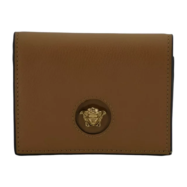 Versace Brown Calf Leather Compact Wallet with Medusa Logo