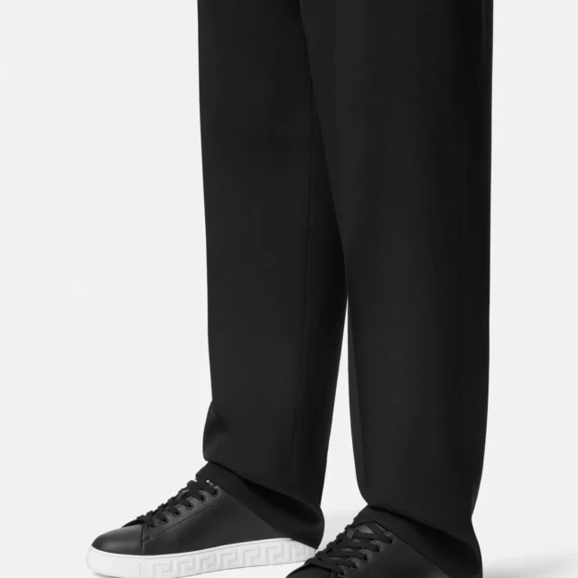 What makes these sneakers truly special is their iconic design elements. The flat sole is enhanced with the signature Greek embossed print, a nod to Versace’s rich heritage. At the back, you’ll find a press-stamped Versace monogram, while the insole features a press-stamped logo for that extra touch of authenticity. These sneakers combine craftsmanship with high fashion, allowing you to make a bold statement wherever you go.