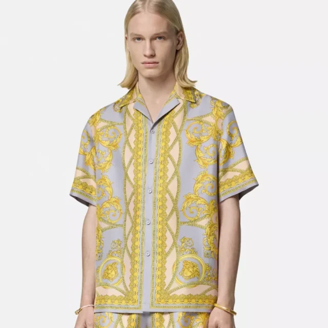 With its bold Cuban collar and eye-catching all-over Barocco print, this shirt is the perfect blend of fashion-forward style and classic design. Whether you’re heading to a laid-back brunch, a casual evening out, or simply enjoying a sunny day, this shirt offers a unique blend of comfort and high fashion that will turn heads wherever you go.