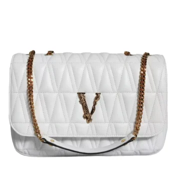 Versace White Quilted Nappa Leather Tote Handbag with Medusa Logo