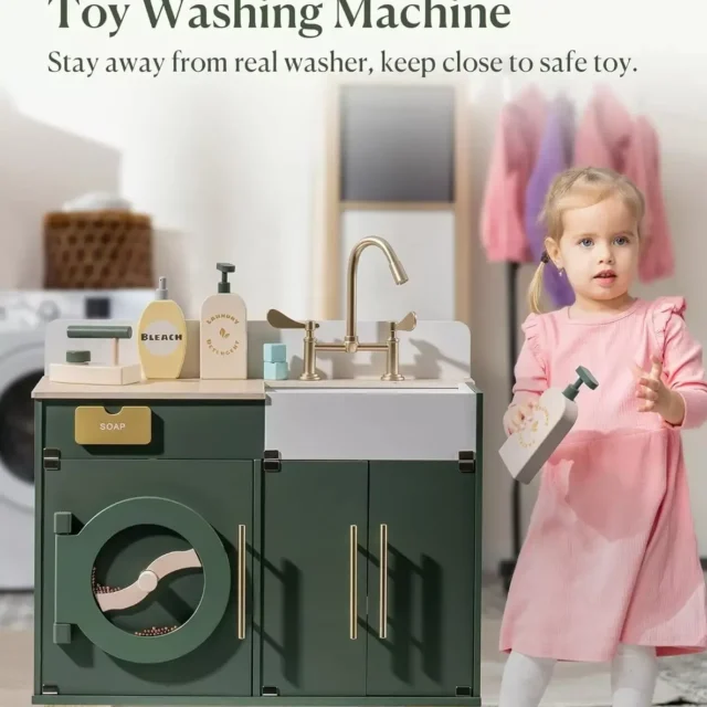 Ignite your child’s creativity and love for pretend play with the charming Vintage Green Wooden Toy Washer and Dryer Kitchen Playset. This beautifully designed set combines a classic look with modern play features, making it a delightful addition to any playroom. Whether kids are “washing” clothes, organizing their pretend laundry supplies, or mimicking household tasks, this playset offers endless opportunities for imaginative fun and skill development.