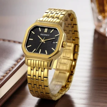 Luxury Men’s Quartz Dress Watch with Rectangle Golden Dial