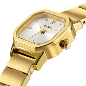 Golden Square Women’s Quartz Watch – Elegant Stainless Steel Dress Timepiece